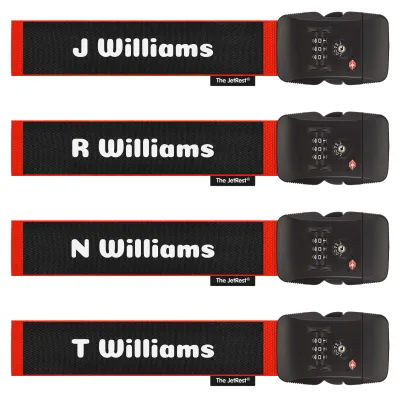 Our most popular suitcase straps would be the UK Made Personalised Luggage Straps (especially the 4 pack of personalised luggage straps) available in our bright colours closely followed by the Lockable Combination Luggage Straps. Almost all our suitcase accessories can be personalised with your name or a catchy slogan of your choice and make for great personalised gifts especially for the regular traveller. TSA Luggage Straps provide for an extra layer of security and are an essential when travelling to the USA and other regions around the world.